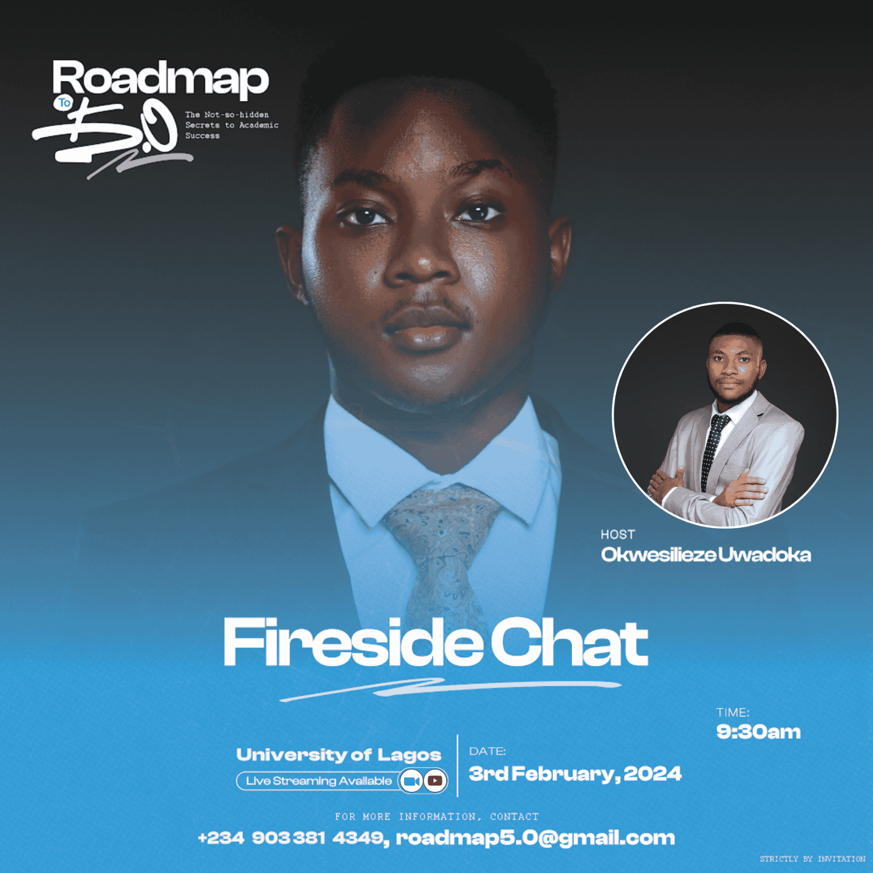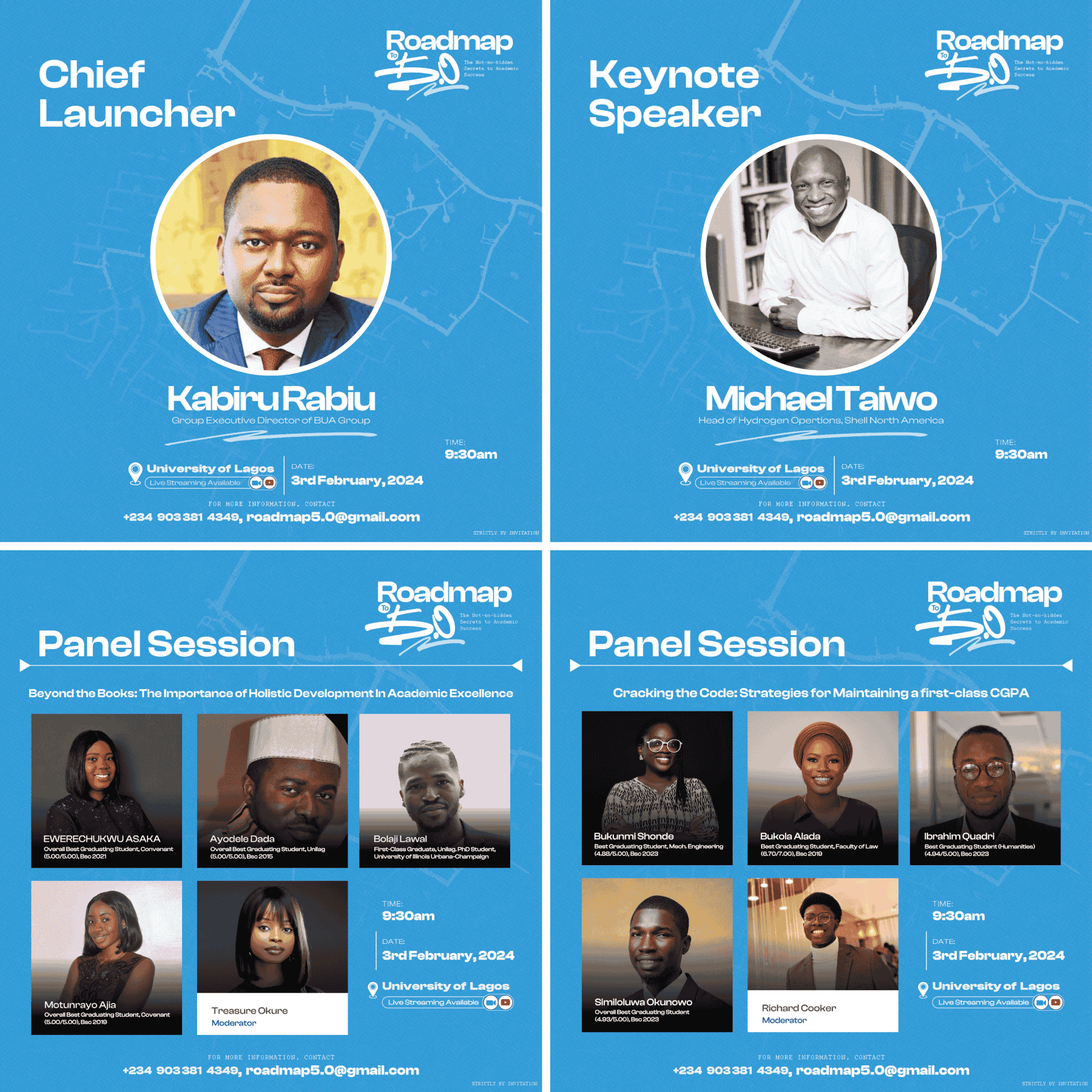 Roadmap to 5.0 project aimed to create a cohesive visual identity for the book launch of David Akanmu, a valedictorian who achieved a perfect 5.0 CGPA.