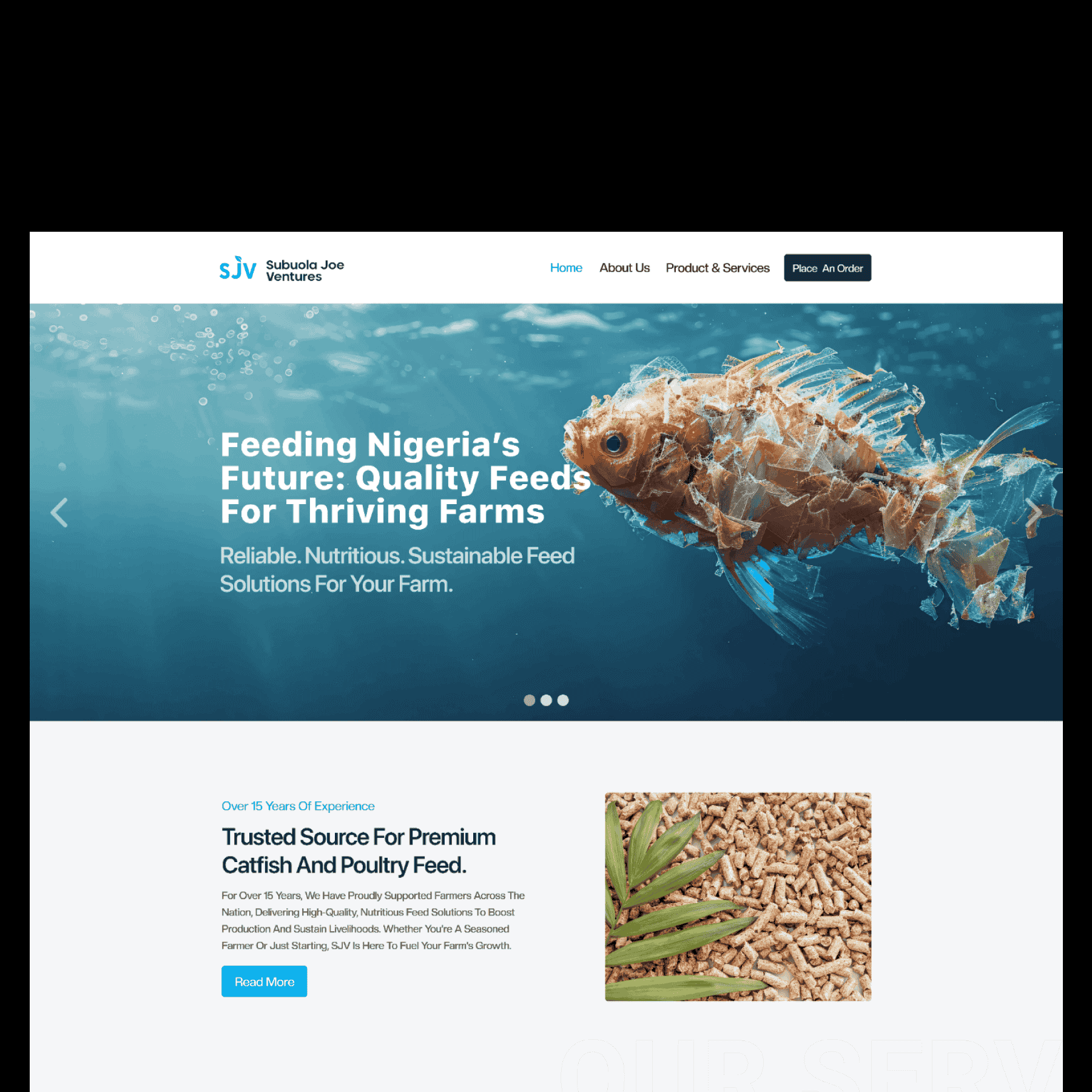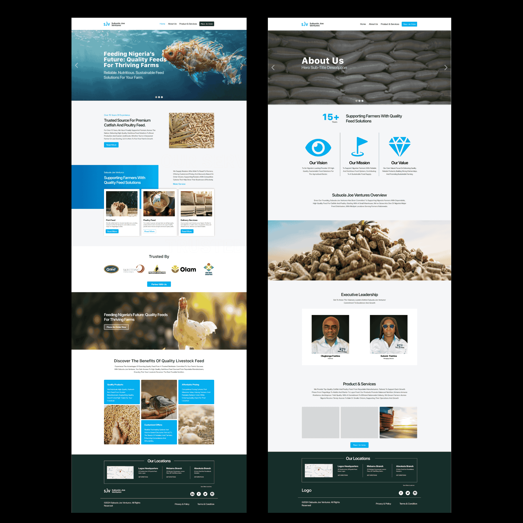 Delivering a clean, modern, and user-friendly website to highlight Subuola Joe Venture’s offerings of premium livestock feeds while maintaining an emphasis on sustainability, accessibility, and quality.